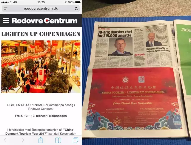 作为“2017中丹旅游年”最重要项目之一,活动于2月10日元宵节正式拉开帷幕!作为活动的一部分,“2017欢乐春节——国风秦韵陕西传统文化周”由哥本哈根中国文化中心邀请来的陕西多位国家级非遗传承人、民间工艺美术大师和国家级木偶皮影演员同时启动。三大购物中心持续一周的表演和展示,预计将吸引数万当地民众,成为丹麦漫长的冬季生活中一道温暖火红的风景线。