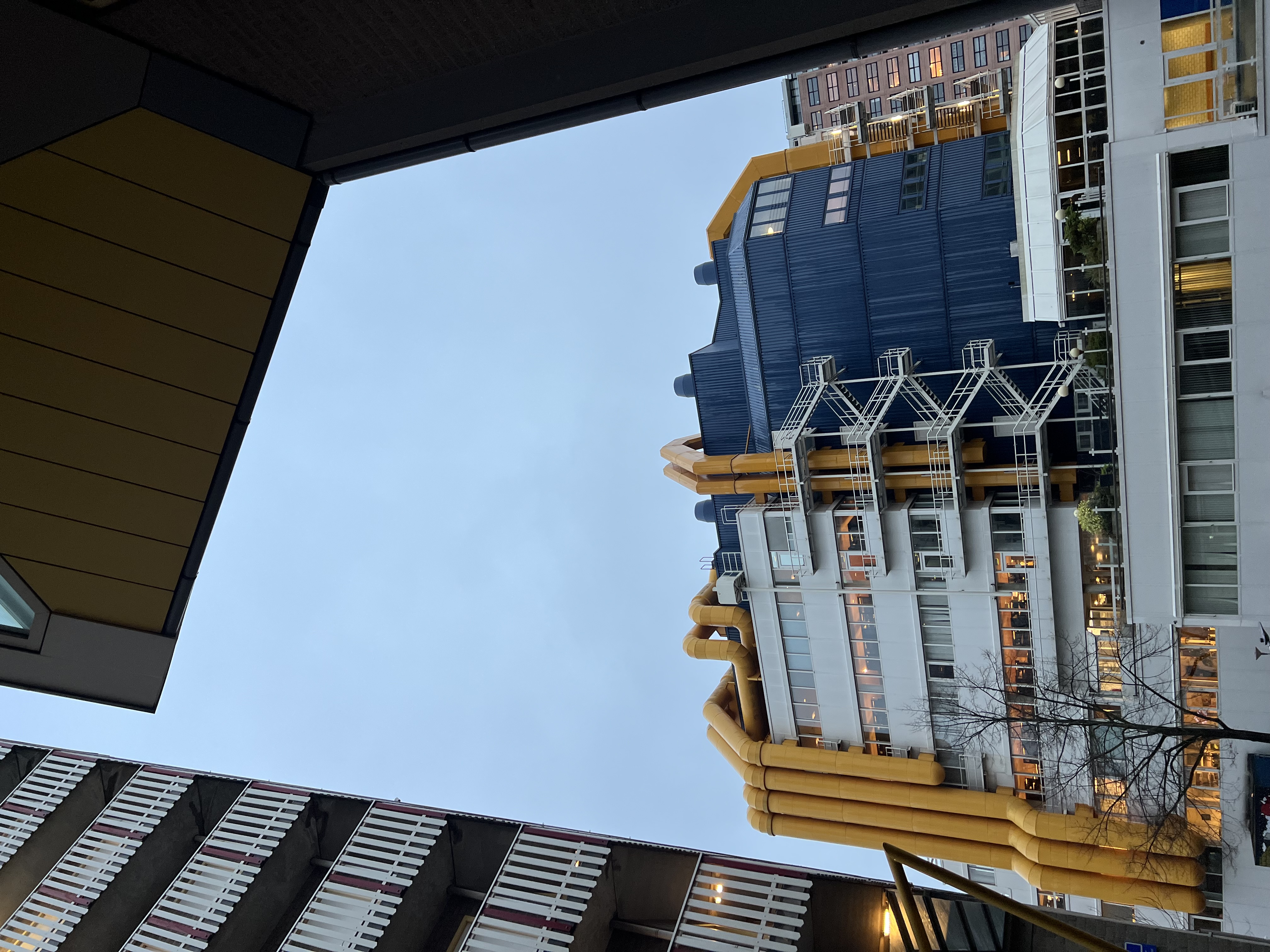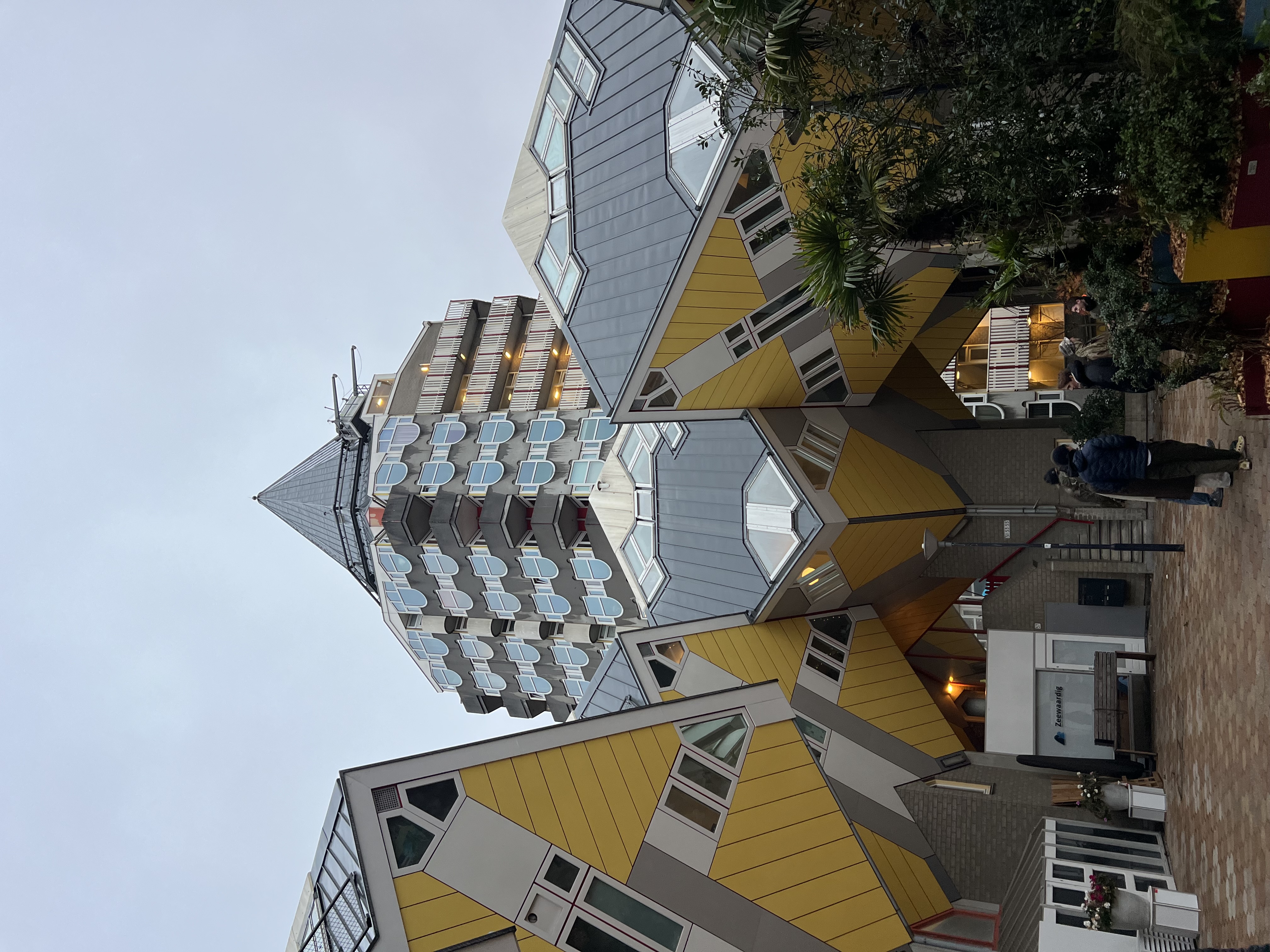 立体方块屋由荷兰知名建筑师布洛姆(Piet Blom)设计,共由38座明黄色的方块房子组成,在蔚蓝天空下发出耀眼的光芒。立体方块屋自1982年开始建造,于1984年完工,设计完成的方块屋就像是一棵抽象的树,而整个社区就像一片森林,因而得名“树屋”。立体方块屋展示了形式、美学和空间效果,看似倾斜,只有一点安置在柱子上,因此三面向着地面,另外三面向着天空。立体方块屋建筑群始终以其独特的造型吸引着荷兰本土以及世界各地的游客。
